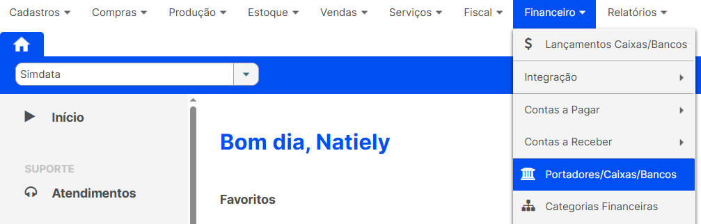 FINANCEIRO > PORTADORES / CAIXAS / BANCOS